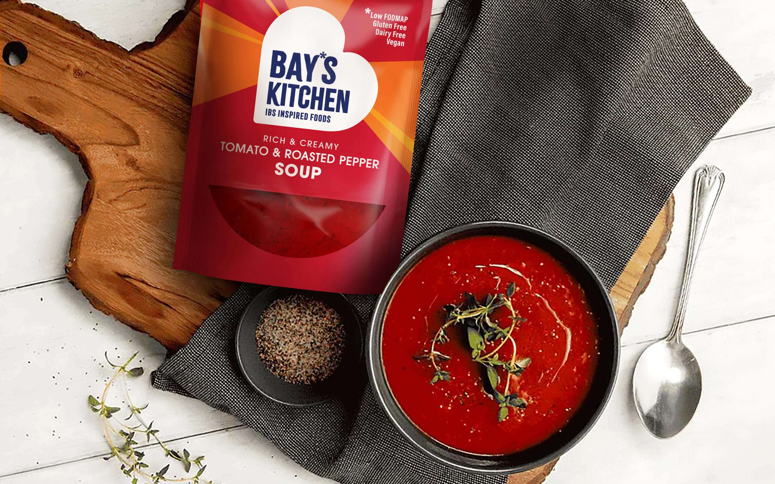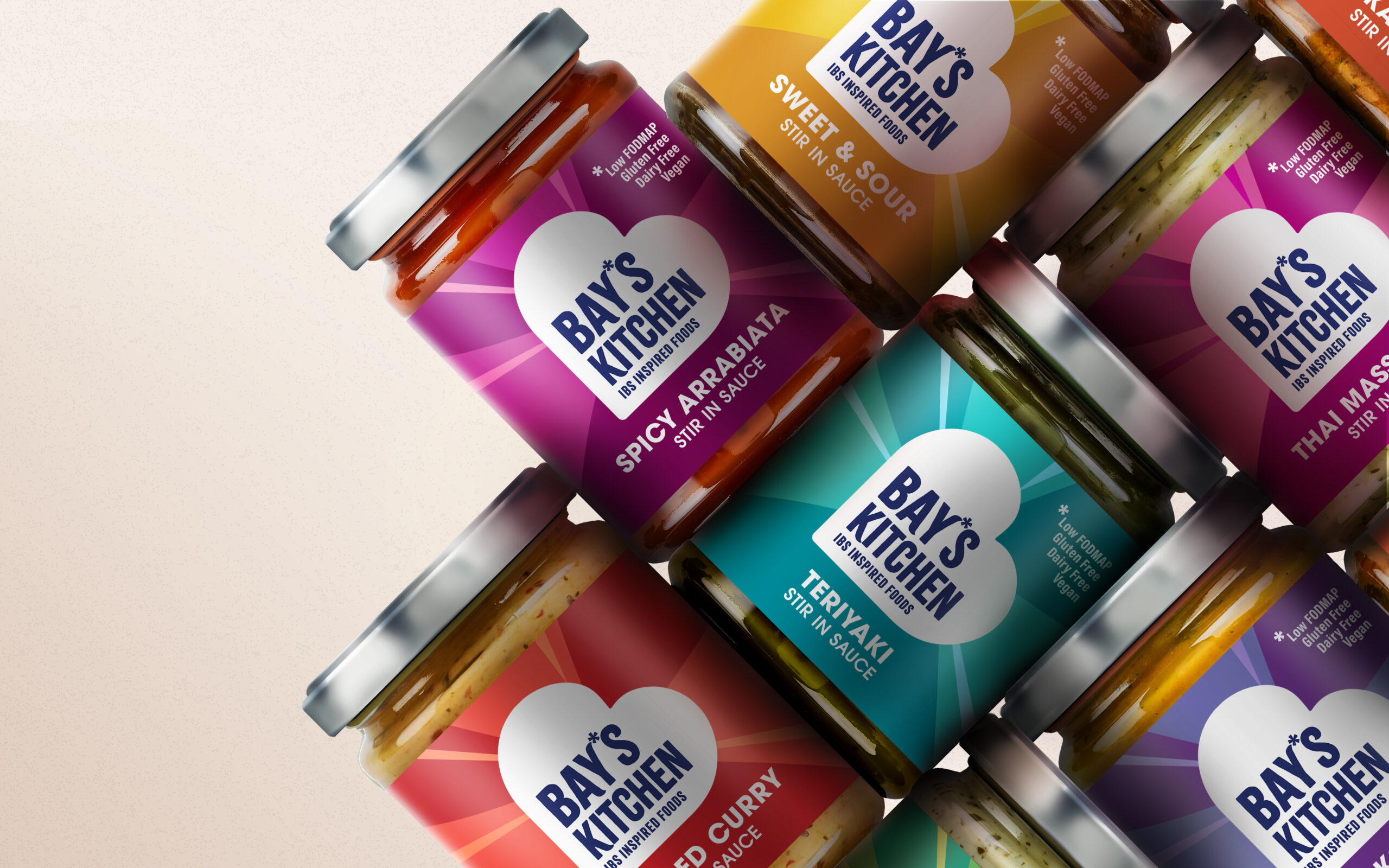 We had the great honour of working with a true food pioneer, Bay Burdett, founder of Bay’s Kitchen. The brand was born of her often desperate attempts to enjoy proper tasty food that was IBS friendly without resorting to scratch cooking. Her genuine desire was to reignite the love for food that so many fellow sufferers had lost due to their biological conditions and the highly restrictive diets they need to follow.