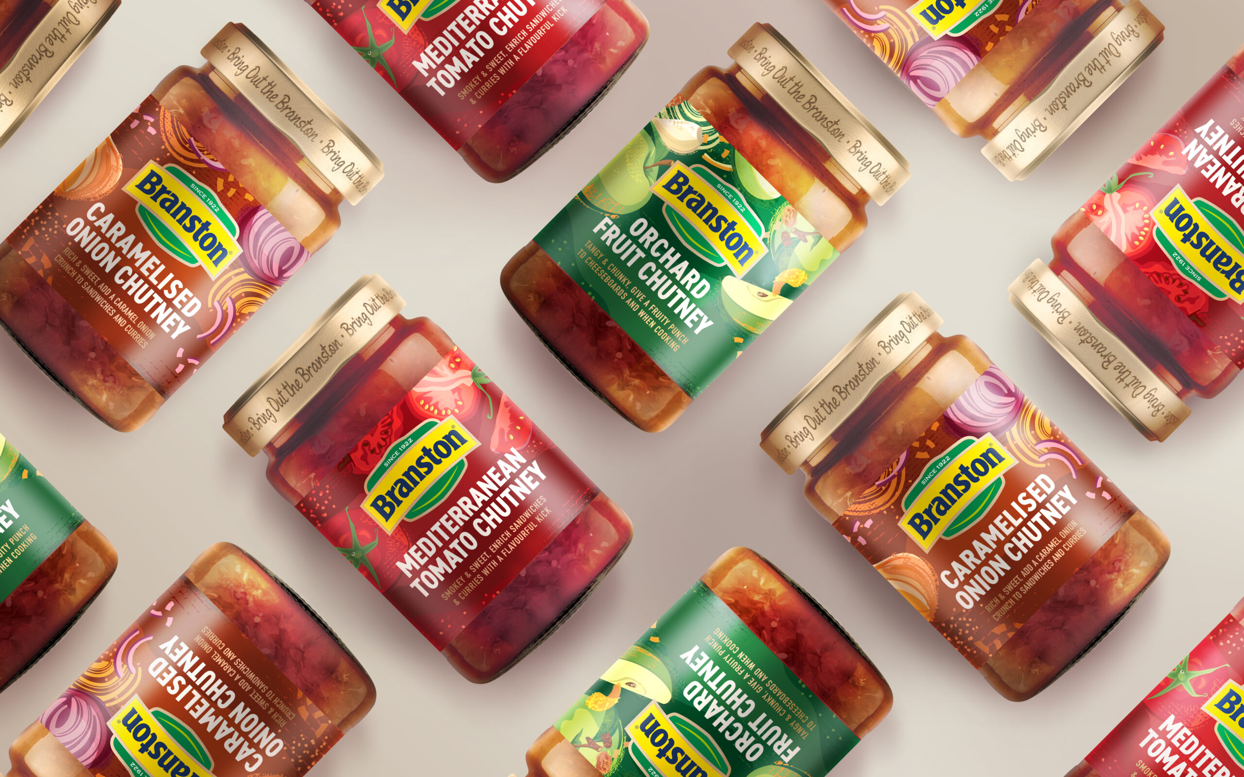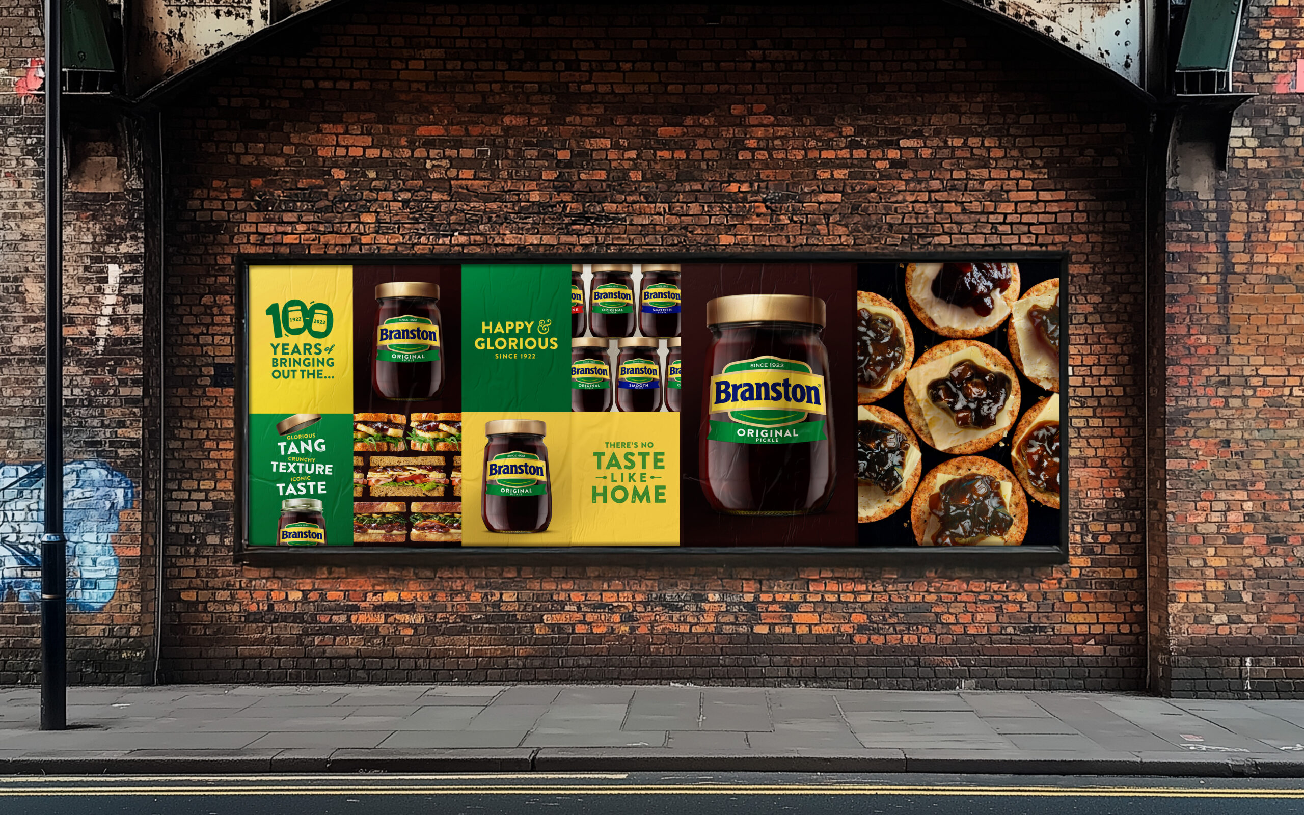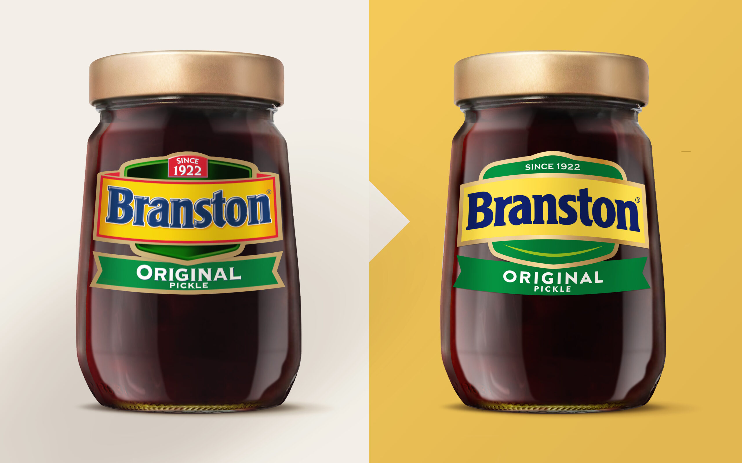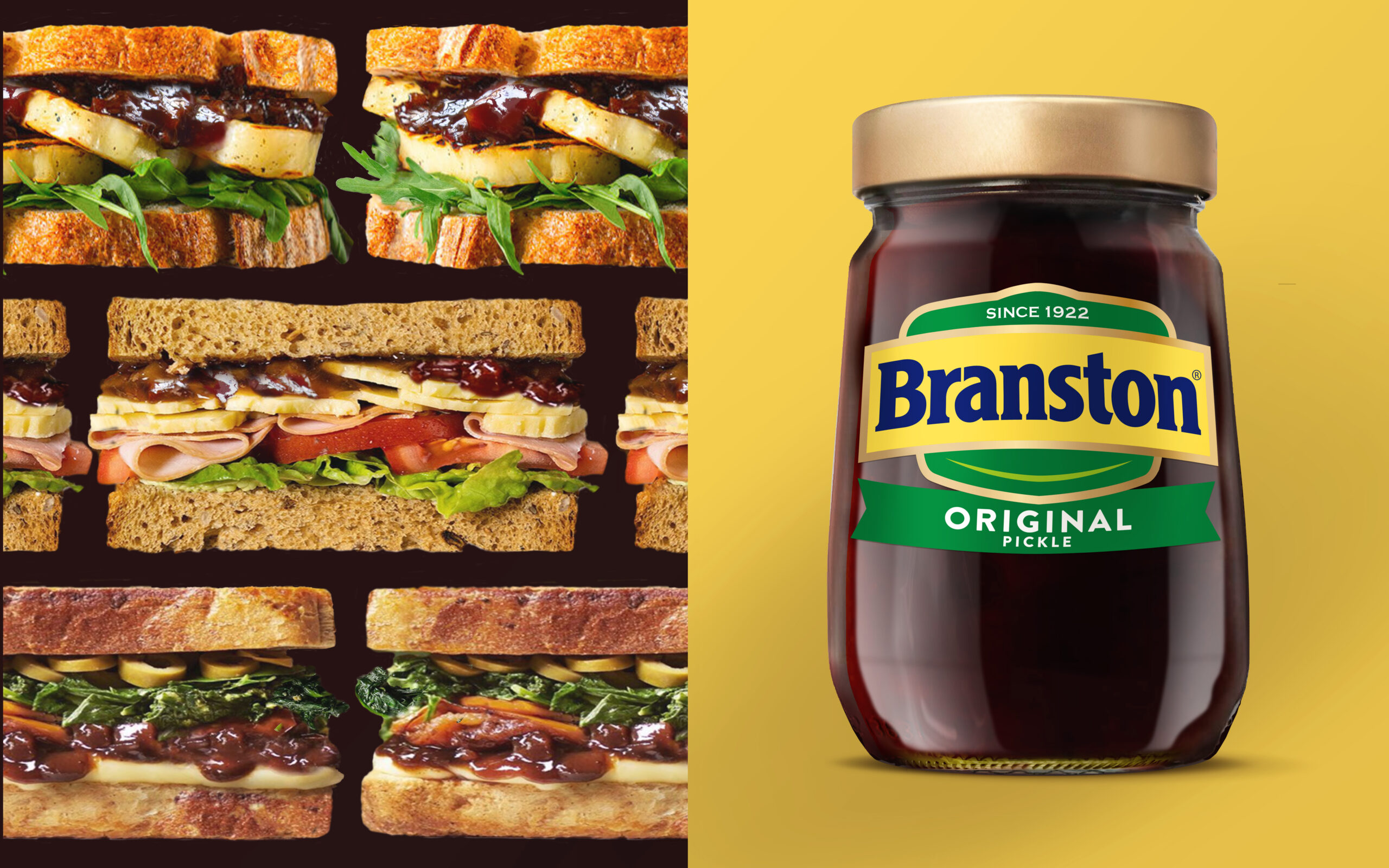 We modernised and simplified the identity whilst retaining its distinctive assets, stripping back the dated primary colours and vignettes of yesteryear, whilst adding a subtle smile which captured the hit of tangy happiness that only Branston can deliver.